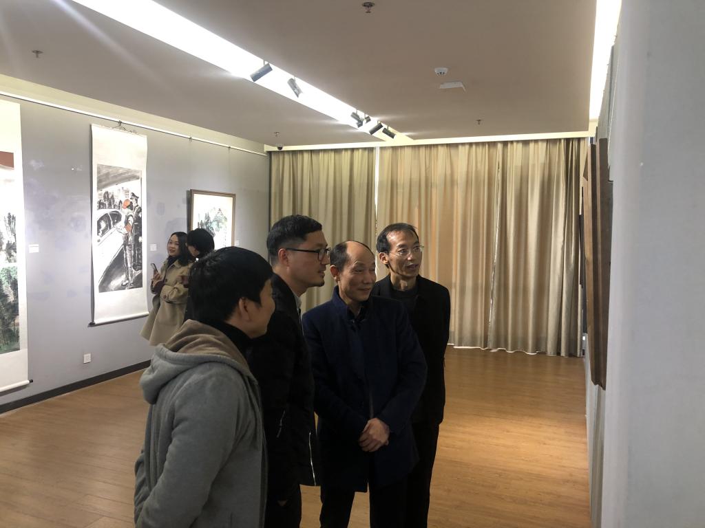 开幕式结束后,与会领导和师生前往展厅参观画展。此次共有40多副作品参与展出,国画、油画、书法、水彩等,其中有进入全国美展的作品,也有全国美协会员的佳作,作品无不凝聚了员工们对母校浓浓的情谊。